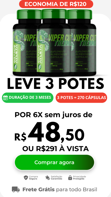 O Viper Cut irá te ajudar, mesmo que não pratique academia ou outras atividades, apenas mantendo uma alimentação saudável e tomando o Viper Cut, já é possível obter ótimos resultados.